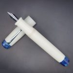 WOW Brand Model-1034A Thantham தந்தம் Resin White Color Body and Cap with Silver Clip Top and Bottom Resin Blue Color Glitter Fontain Pen